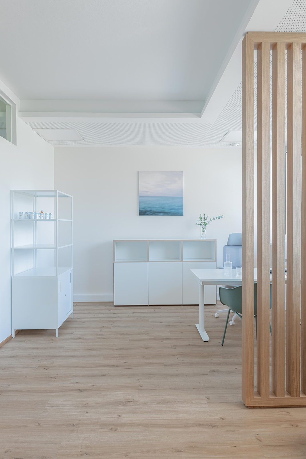 Ziel war es, aus einem kahlen, unbelebten Raum eine Praxis zu schaffen, die Vertrauen, Ruhe und Wohlbefinden ausstrahlt. Einen Ort, an dem Heilung möglich wird, sobald man ihn betritt.